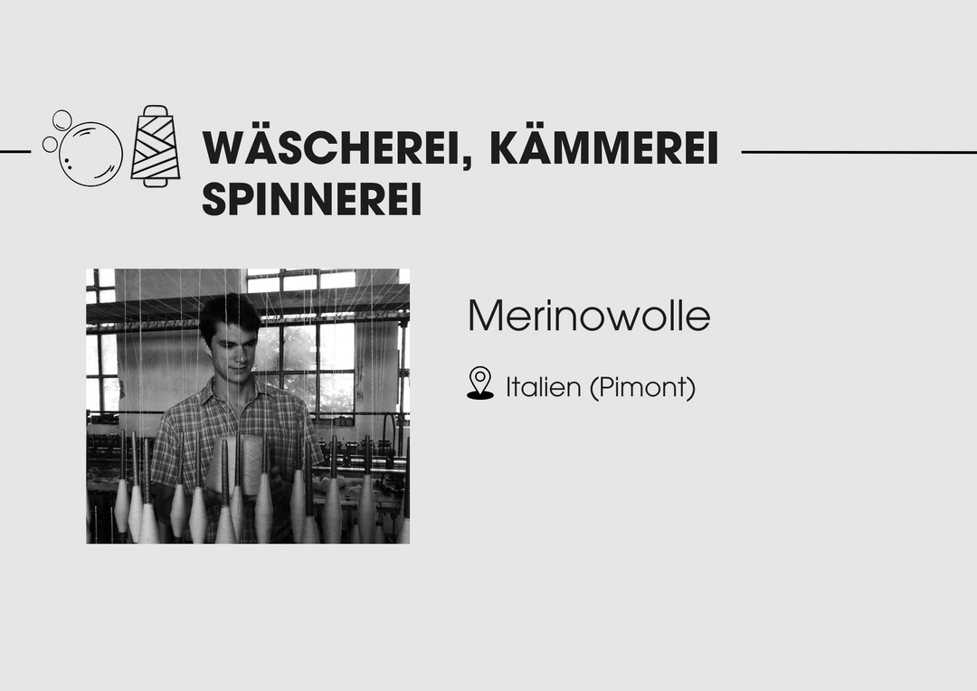 Wir arbeiten mit einer norditalienischen Spinnerei zusammen. Dort wird die Wolle auch gewaschen. Das Garn ist, dank der addierten Eigenschaften der provenzalischen und Falklandwolle, sehr elastisch und weich. Die Fasern werden auch von der Spinnerei gefärbt. Sie sind dadurch tiefer als wenn die Pigmente direkt auf dem T-Shirt gebracht werden. Außerdem wird die Wolle nach GOTS Richtlinien gefärbt, also umweltfreundlich.